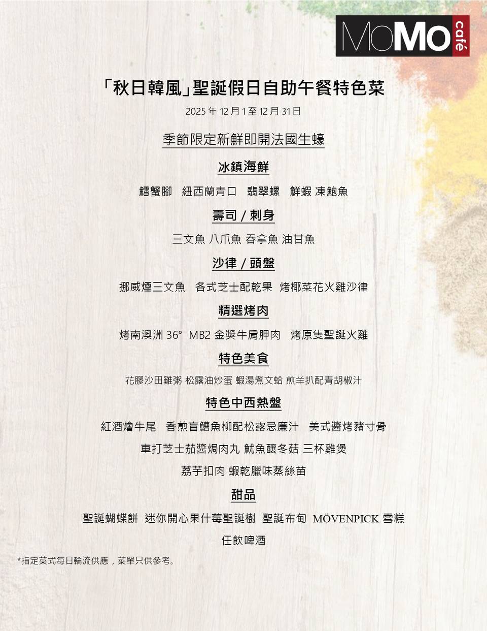 沙田萬怡酒店自助餐限時買一送一 | MoMo Cafe |「秋日韓風」主題 聖誕適用 | 自助餐優惠2025
