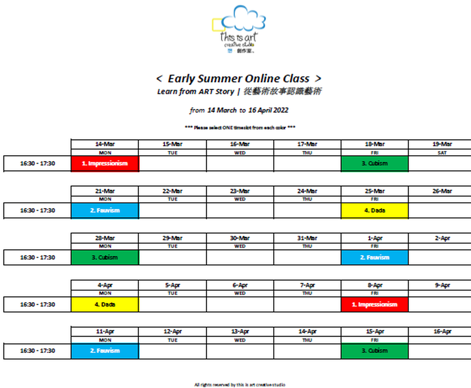 創作總監𝗠𝗶𝘀𝘀 𝗚𝗶𝗴𝗶會同大家講故事,畫吓畫,從中認識各個時期以及派別嘅大師作品。𝗠𝗶𝘀𝘀 𝗚𝗶𝗴𝗶 亦會同大家一齊做小習作,一步一步加深對每個藝術手法嘅理解。以簡單輕鬆嘅方法認識到不同藝術家‍嘅創作風格、了解美術史、學習藝術知識技巧。