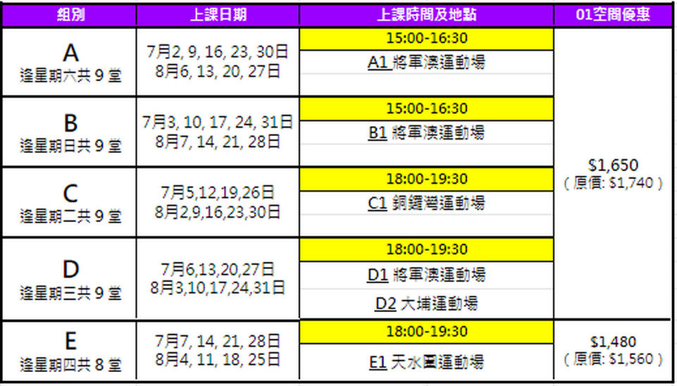 2. 請假安排: 暑期田徑訓練課程將不設任何請假申請,學員請按時出席訓練。