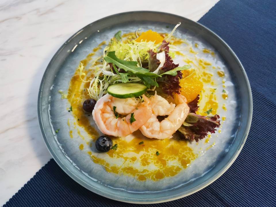 鮮果蝦沙律、君度橙酒