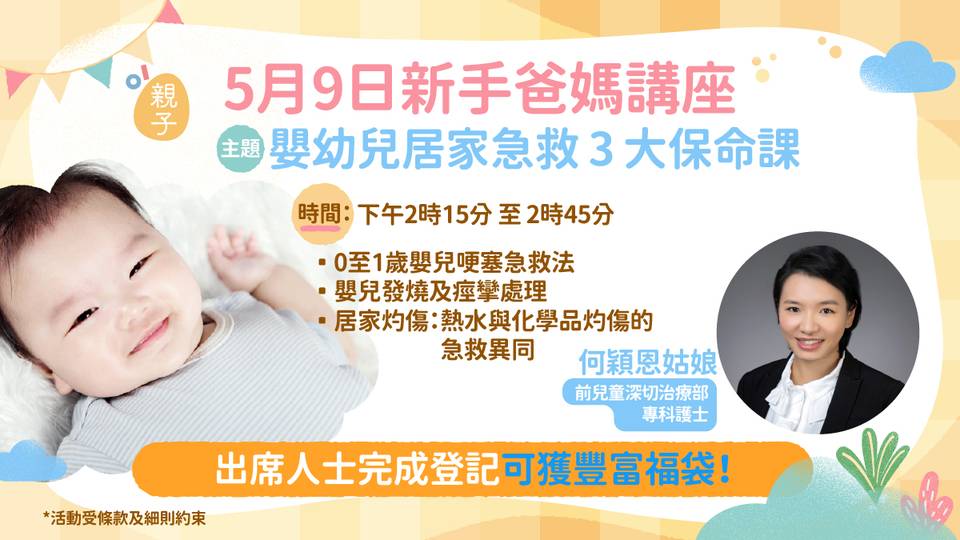 《香港01》旗下「01親子」於2026年5月9日再度舉辦「新手爸媽講座」,為一眾預備做父母、正等待BB出生的父母、BB剛出生的新手爸媽,解決養育新生兒的各種疑問。