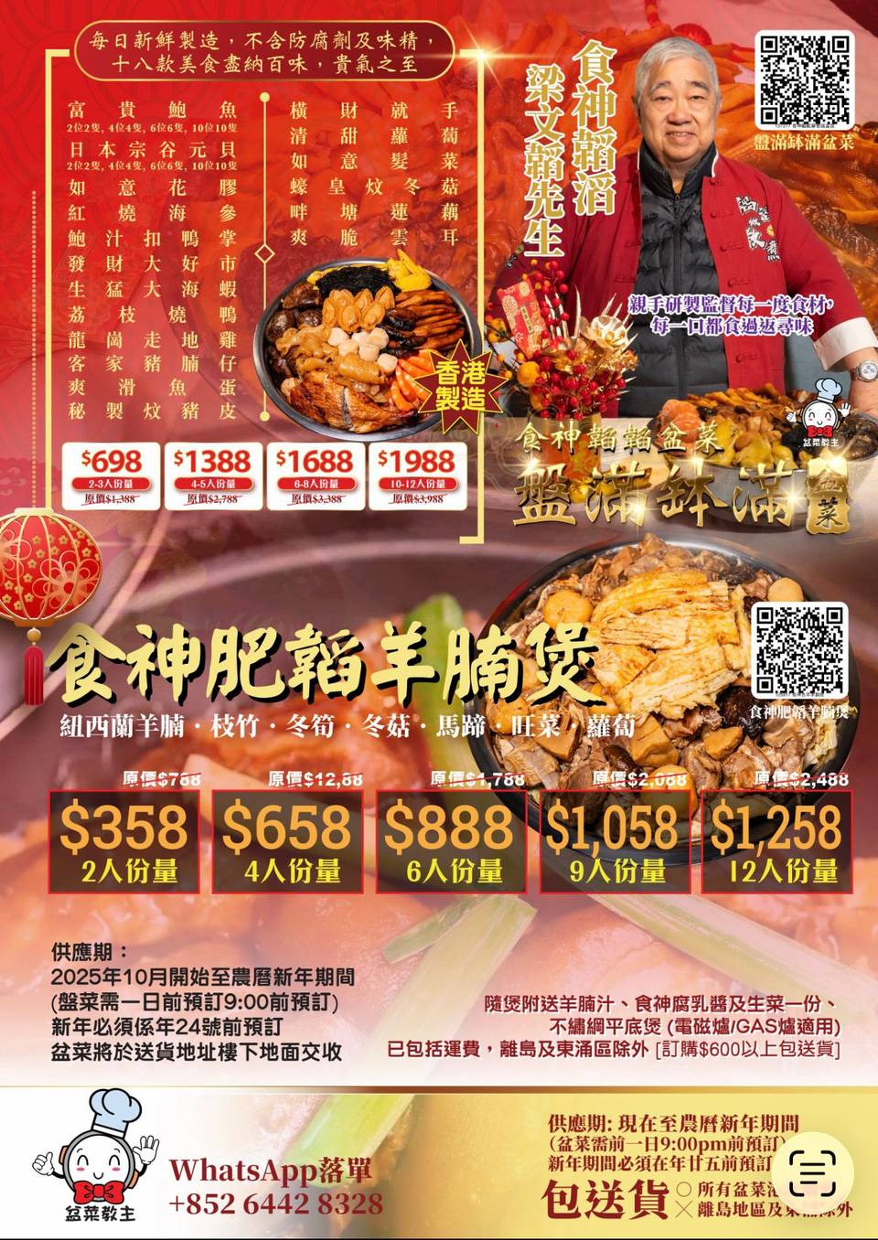 「食神肥韜盆菜」由米芝蓮星級大廚、香港著名食神「肥韜」梁文韜先生親自監製。肥韜以推廣圍村菜及傳統粵菜聞名,今次特別聯同「盆菜教主」強強聯手,堅持 100% 香港每日新鮮製造。餐廳選用天然食材,保證不含防腐劑及味精,務求將最正宗、貴氣且具備圍村風味的百味盆菜送到每一位顧客家中。
