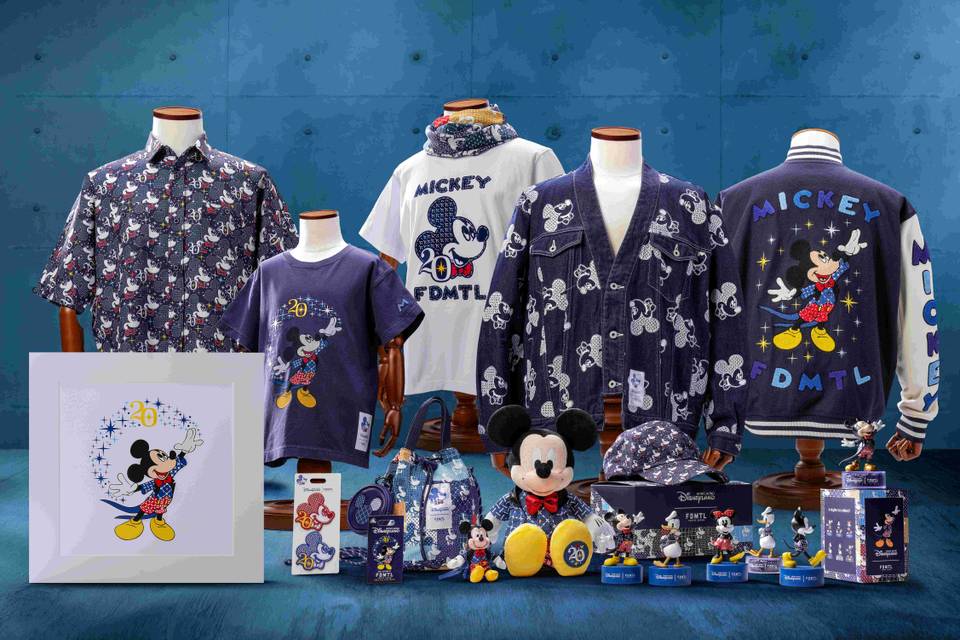 承接20 周年派對慶典,香港迪士尼亦再度與日本潮流品牌FDMTL 合作,推出全新 20 周年獨家設計師系列,包括 T恤、外套、配飾、盲盒擺設以及兩款限量珍藏商品:日本製全印花牛仔外套(限量發售50件,港幣3,199 元),以及米奇20周年主題絲印美術畫。