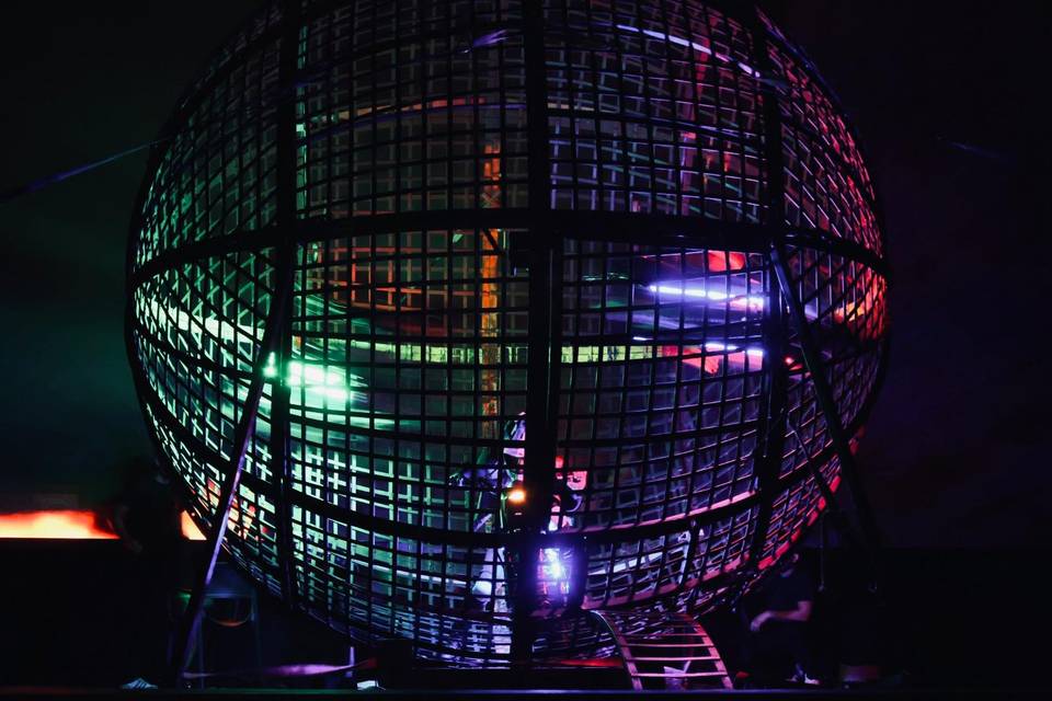 車手在發光的鋼鐵球體內,上演心跳加速的極速飛馳。