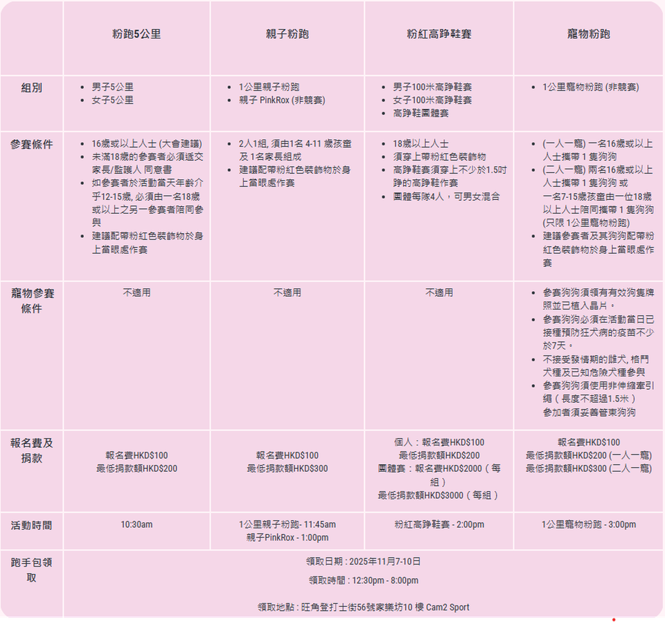 【粉跑Pink Run.HK 2025】賽事項目及參賽條件: