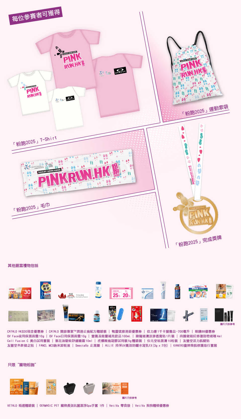 【粉跑Pink Run.HK 2025】紀念品及獎項: