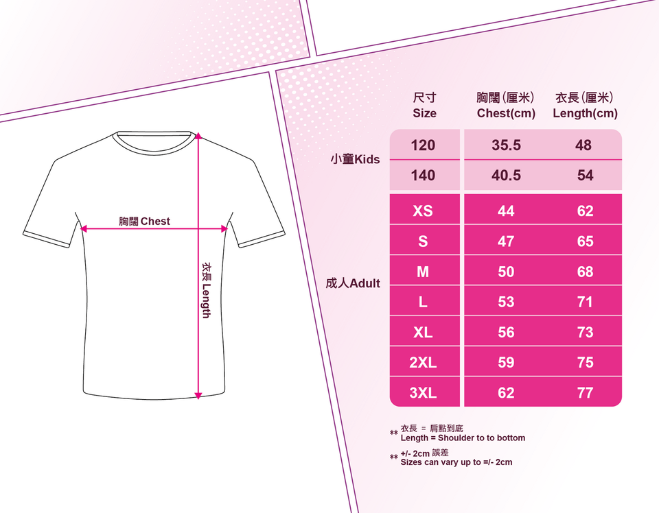 【粉跑Pink Run.HK 2025】T-shirt 尺碼: