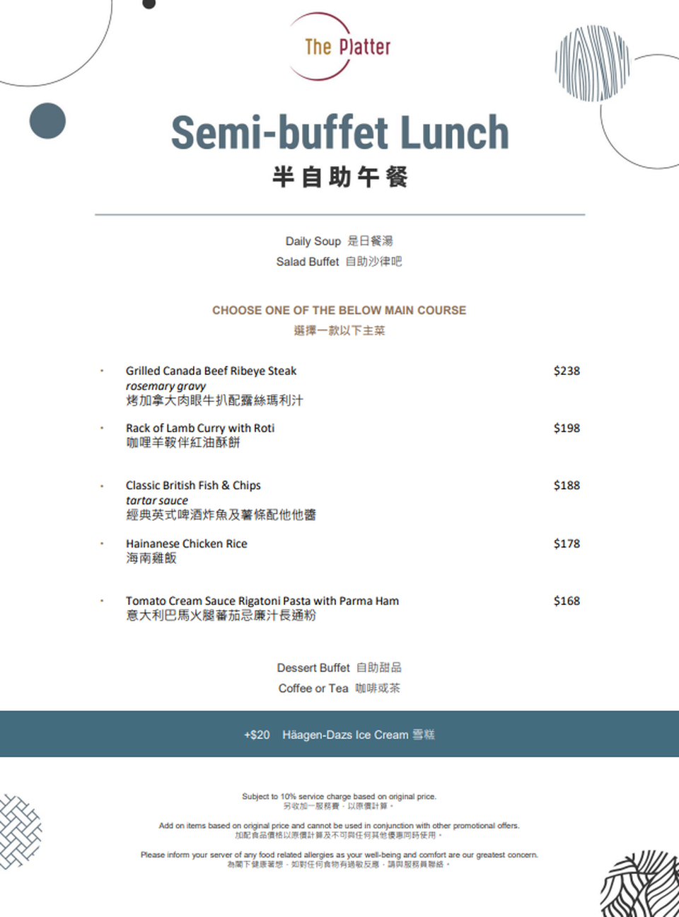 6折 | 品味獅城自助午餐 | 適用於星期六、日及公眾假期 12:00nn - 2:30pm