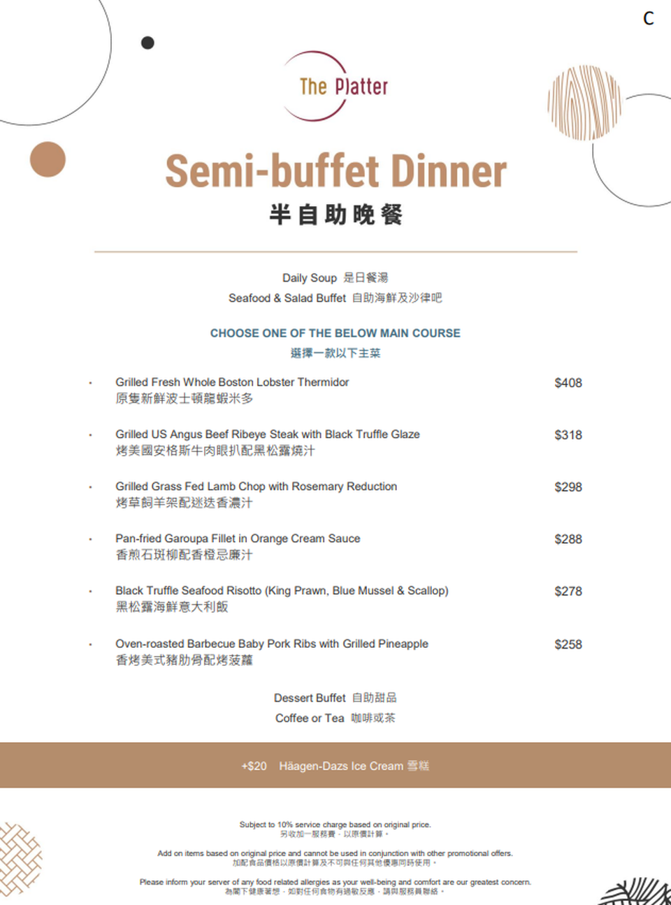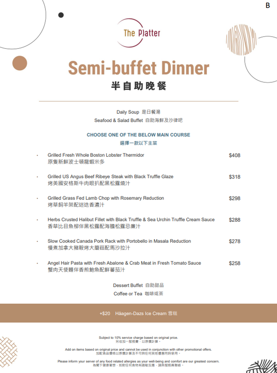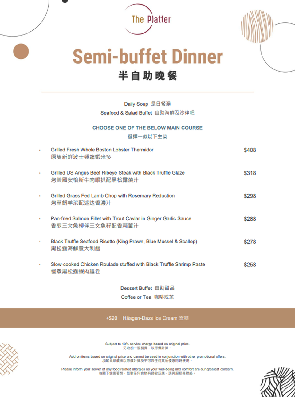 6折 | 龍蝦松露•半自助晚餐 | 適用於星期一至四 (不適用於星期六日及公眾假期) 6:00pm – 9:00pm