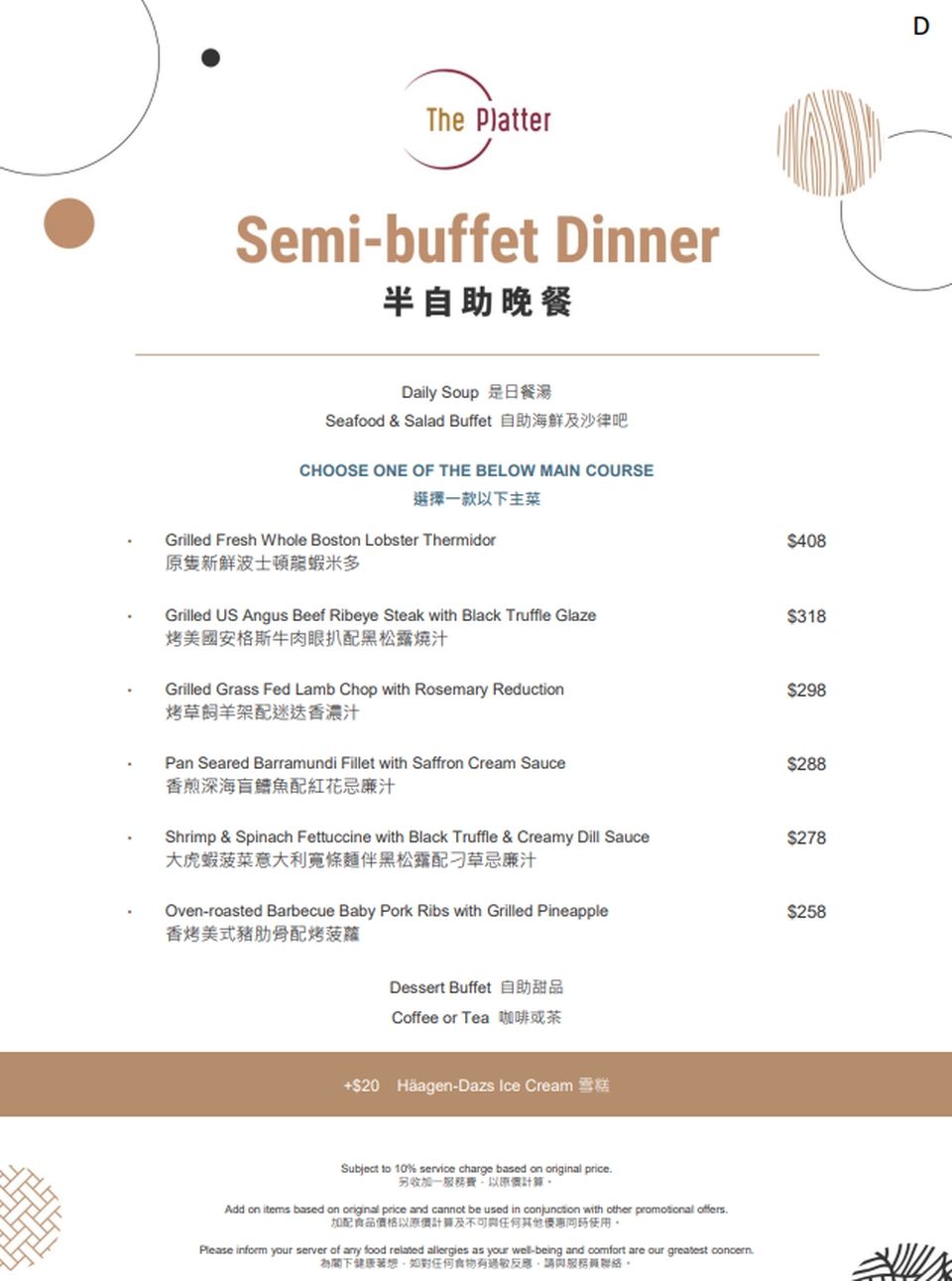 荃灣悦品酒店自助餐 The Platter 價錢: