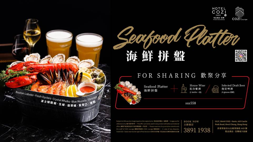 - 海鮮拼盤分享組合 (波士頓龍蝦、生蠔、翡翠螺、藍青口、凍蝦)