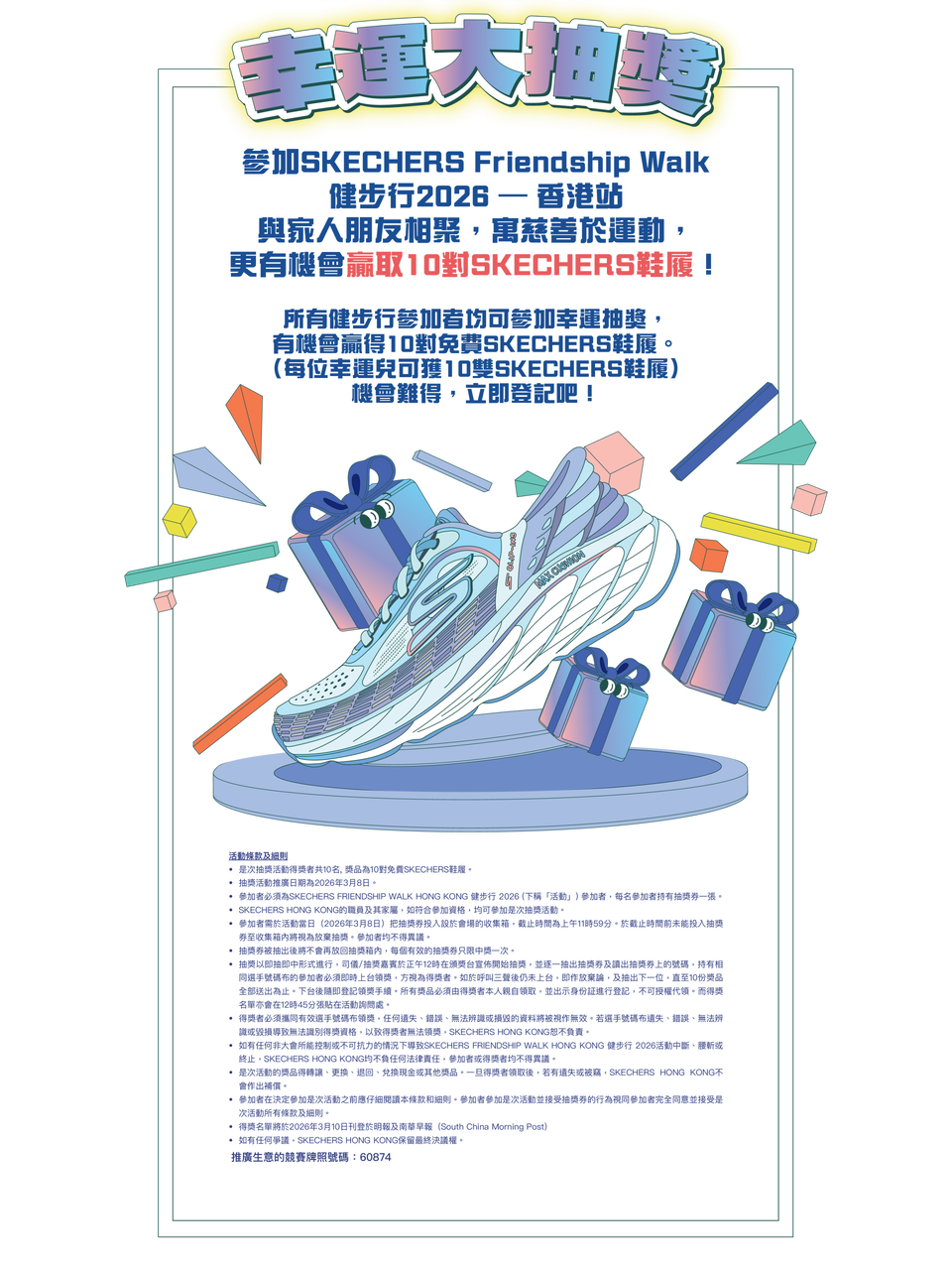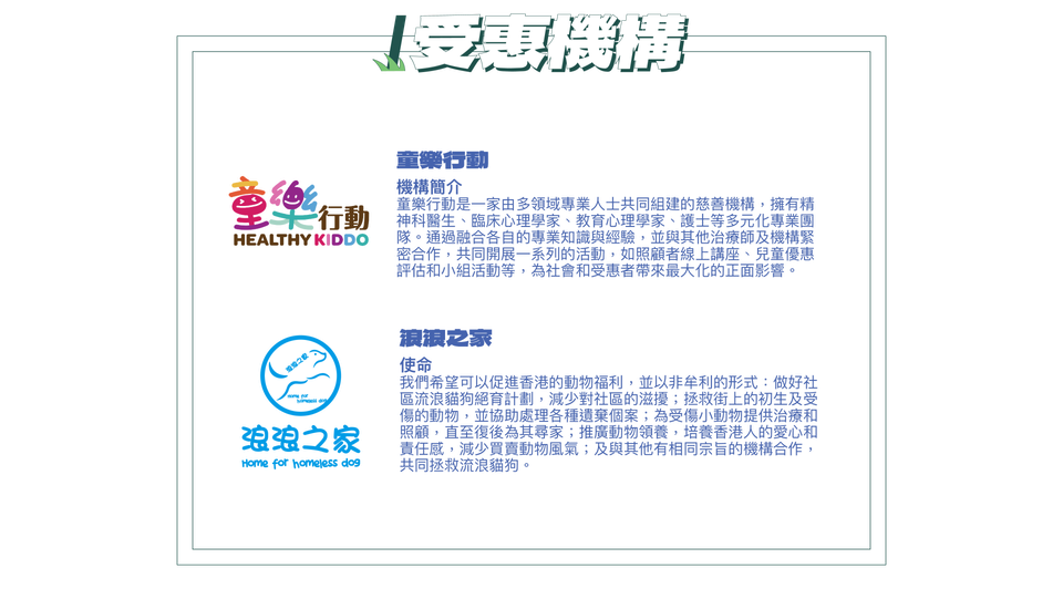 所有參加者都會獲得豐富的活動限定選手包。活動的嘉年華區節目同樣精彩,除了一系列打卡位、攤位遊戲、舞台表演等,更有寵物活動區,讓一家大小連同毛孩盡情玩樂!活動部分收益將捐贈至本地慈善機構「浪浪之家」及「童樂行動」,增添溫暖意義。