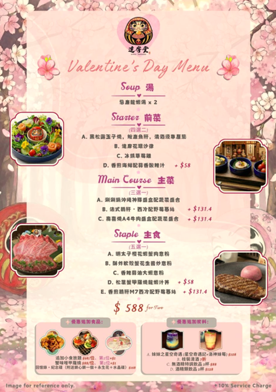 (3) 浪漫情人節西日定食♥送鎖心鎖1個 + 永生花 + 水晶碟