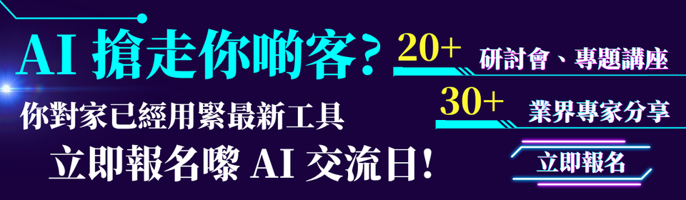 現場聽企業龍頭、專家分享最新AI趨勢,點用AI吸引客源、新型AI商用實戰方法!